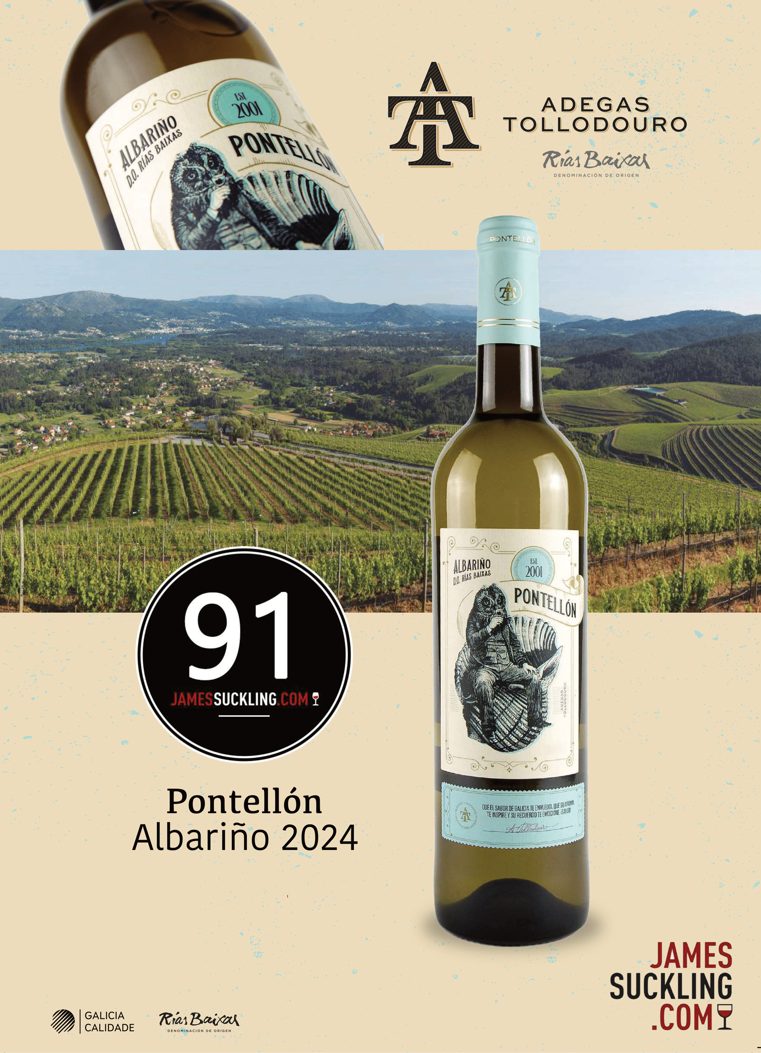 Tollodouro Pontellón Albariño 2024 has just earned 91 points from James Suckling, underscoring its position among the most distinctive expressions of Rías Baixas today. Bright, mineral, and intensely aromatic, this is an Albariño that over-delivers on purity and precision.